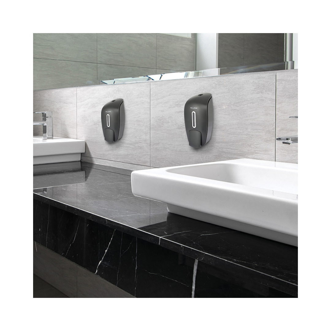 This versatile ADA-compliant dispenser is designed for use with both liquid hand soap and sanitizer, providing reliable hand hygiene in any commercial environment. Constructed from durable gray ABS plastic, it features a 27 oz capacity that delivers up to 1,000 uses per fill. The front sight window allows easy monitoring of fill levels, while the built-in lock helps prevent tampering and ensures product security. Ideal for offices, restaurants, hotels, healthcare facilities, hospitals, and schools, this dispenser combines functionality, durability, and hygiene in one efficient unit.